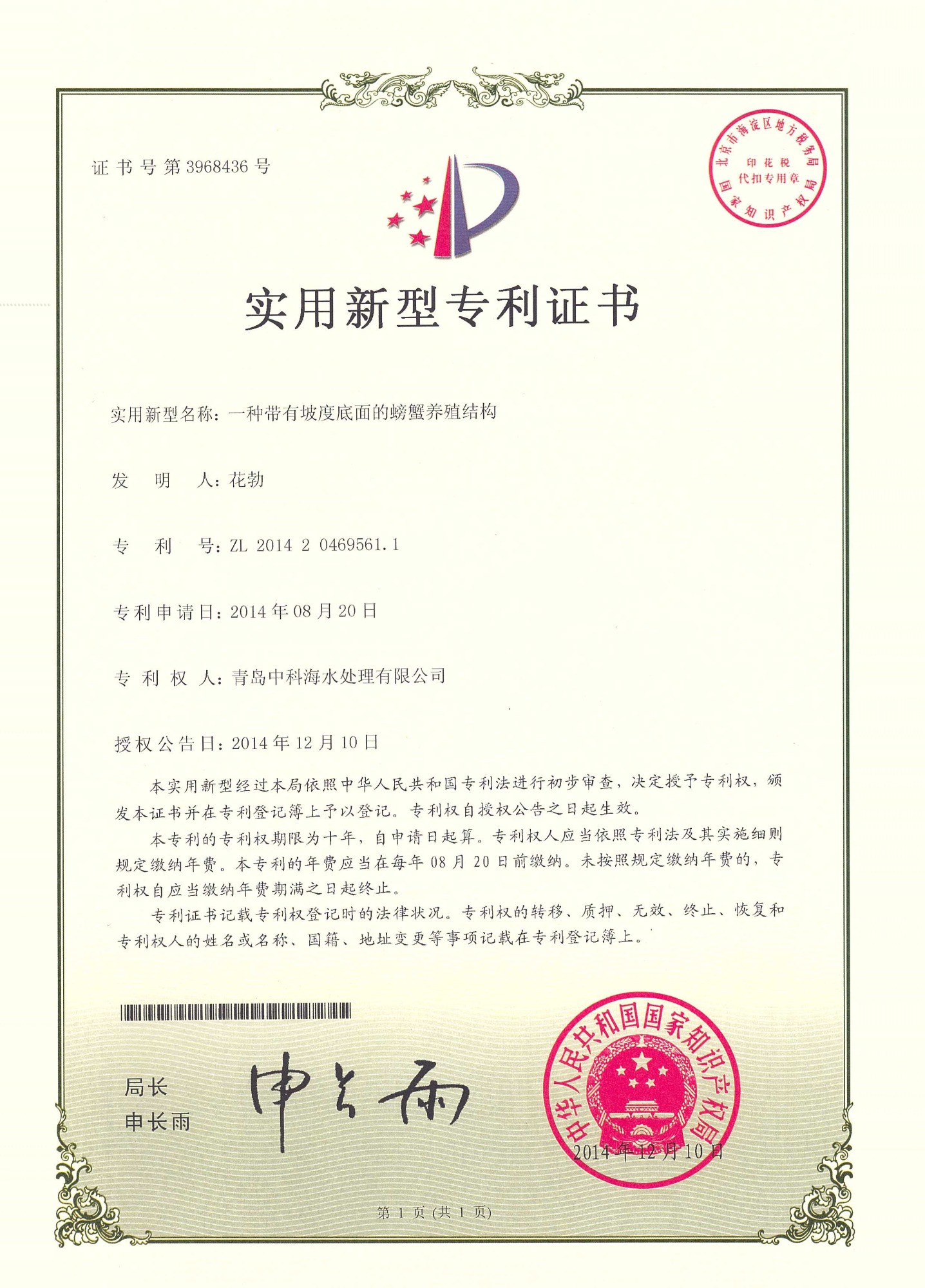 中科海专利 带有坡度底面的螃蟹养殖结构