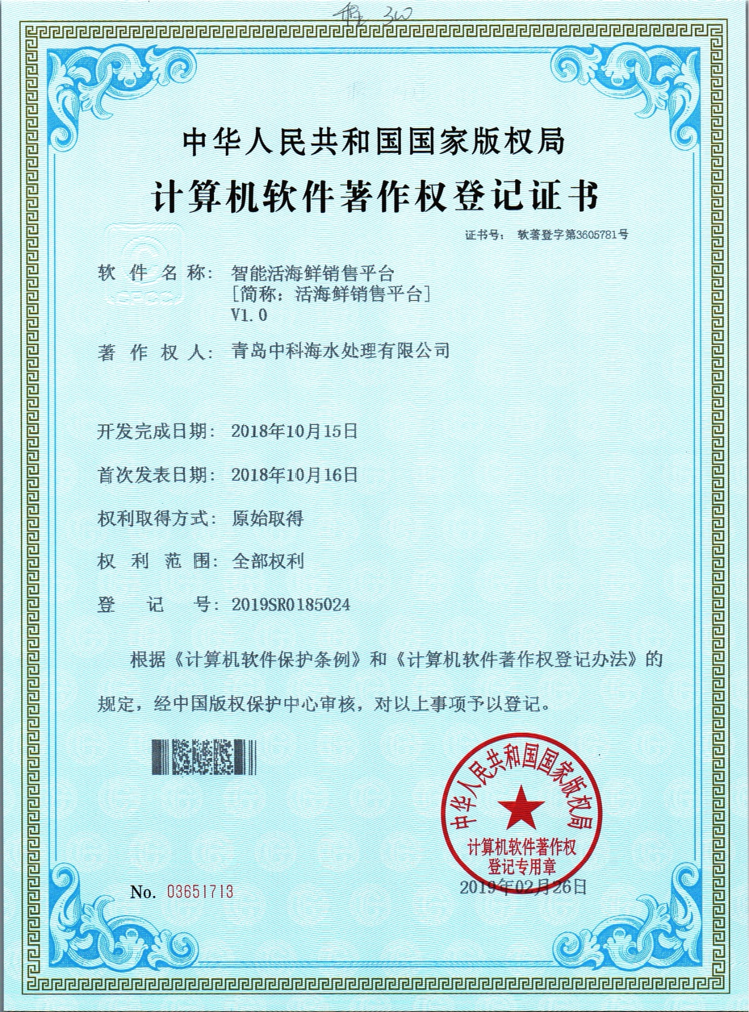 中科海软件著作 智能活海鲜销售平台